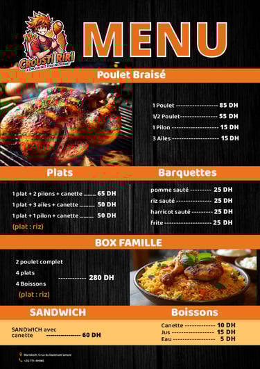 Savourez notre poulet grillé, mariné dans un mélange d'épices unique.
